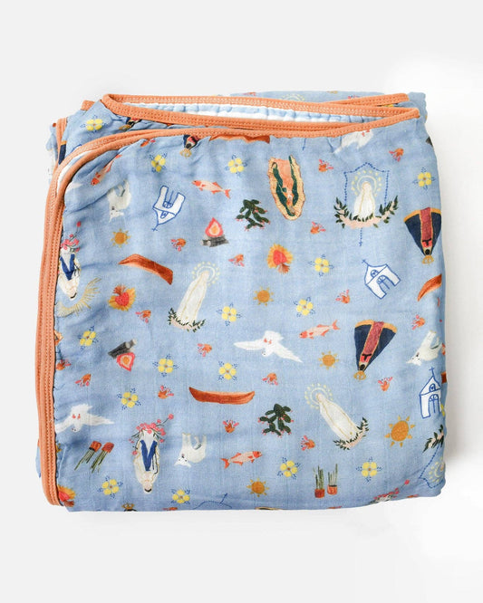 Blue Marian Deluxe Muslin Baby Blanket Quilt