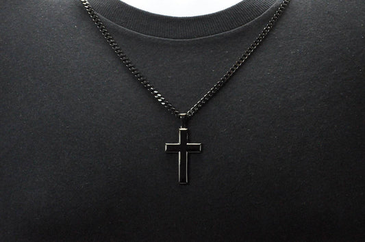 Men's Black S.Steel Cross Pendant