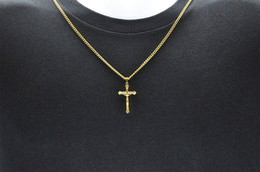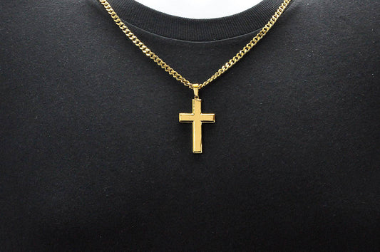 Men's Gold S.Steel Cross Pendant w/ 24" curb chain