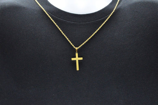 Men's Gold Stainless Steel Cross Pendant With 24" Rope Chain