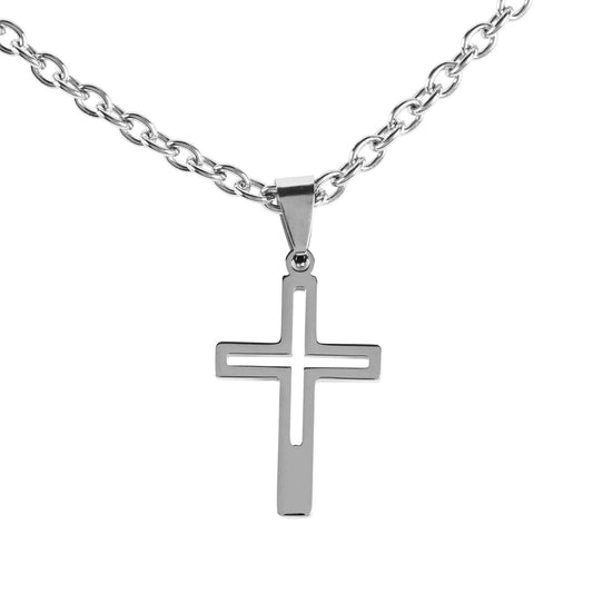 Necklace Silver Plated Cross with nail Cross on 24" Chain