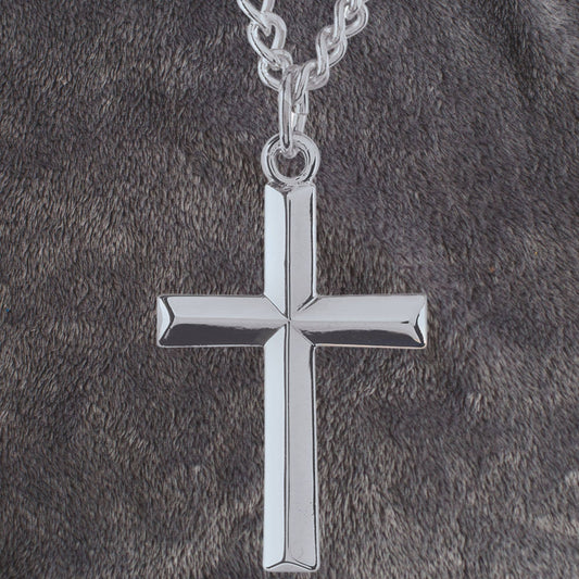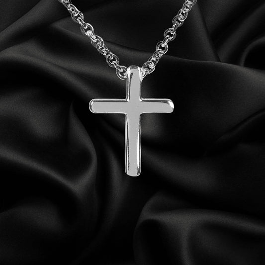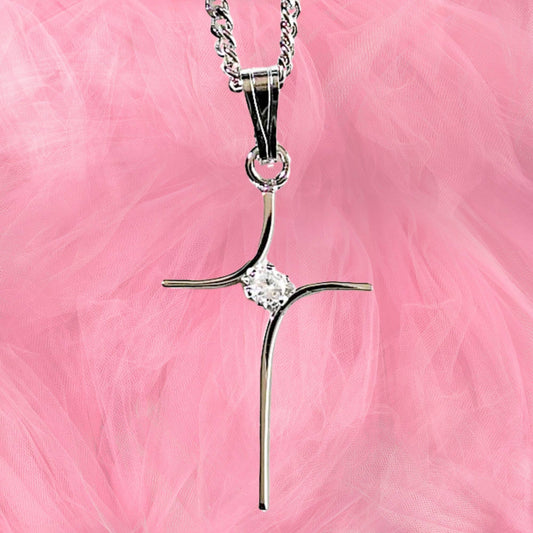 Silver Plated CZ Mini Thin Box Cross Necklace