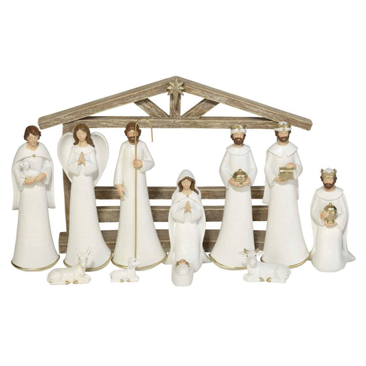 11 Piece White Nativity Set with Chreche