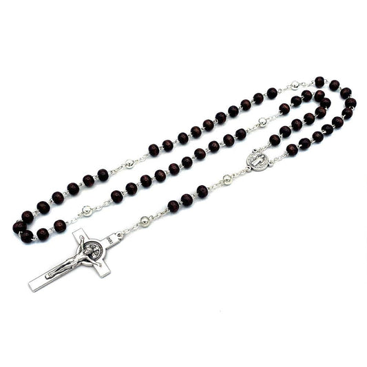 Brown Vinyl Rosary Pouch Squeeze Top Gold Cross Imprint
