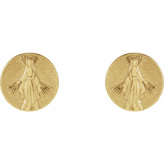14K Yellow Tiny Miraculous Medal Stud Earrings