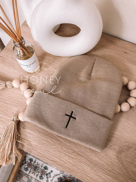 Sold outEmbroidered Cross Knit Beanie