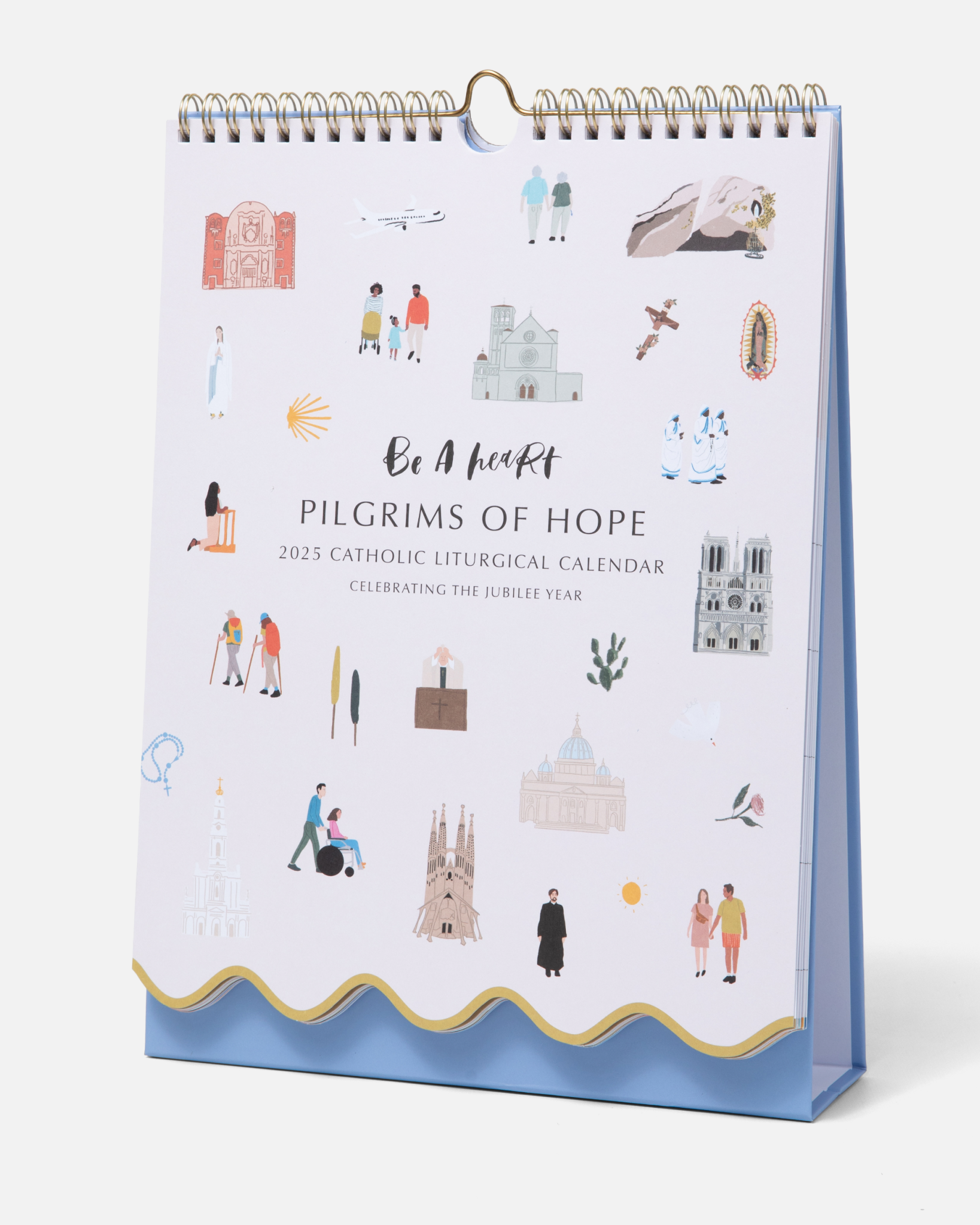 The 2025 Liturgical Calendar is themed “pilgrims of hope” like the Jubilee year decreed by Pope Francis. Playing on the idea of pilgrims, each month has illustrations of a different popular site for pilgrimages throughout the world. Each month also has a prayer intention and prayer written by Pope Francis for the entire Church to pray together. Wall and desk stand combo! The Catholic calendar has all liturgical and feast dates as well as American holidays listed from the USCCB.