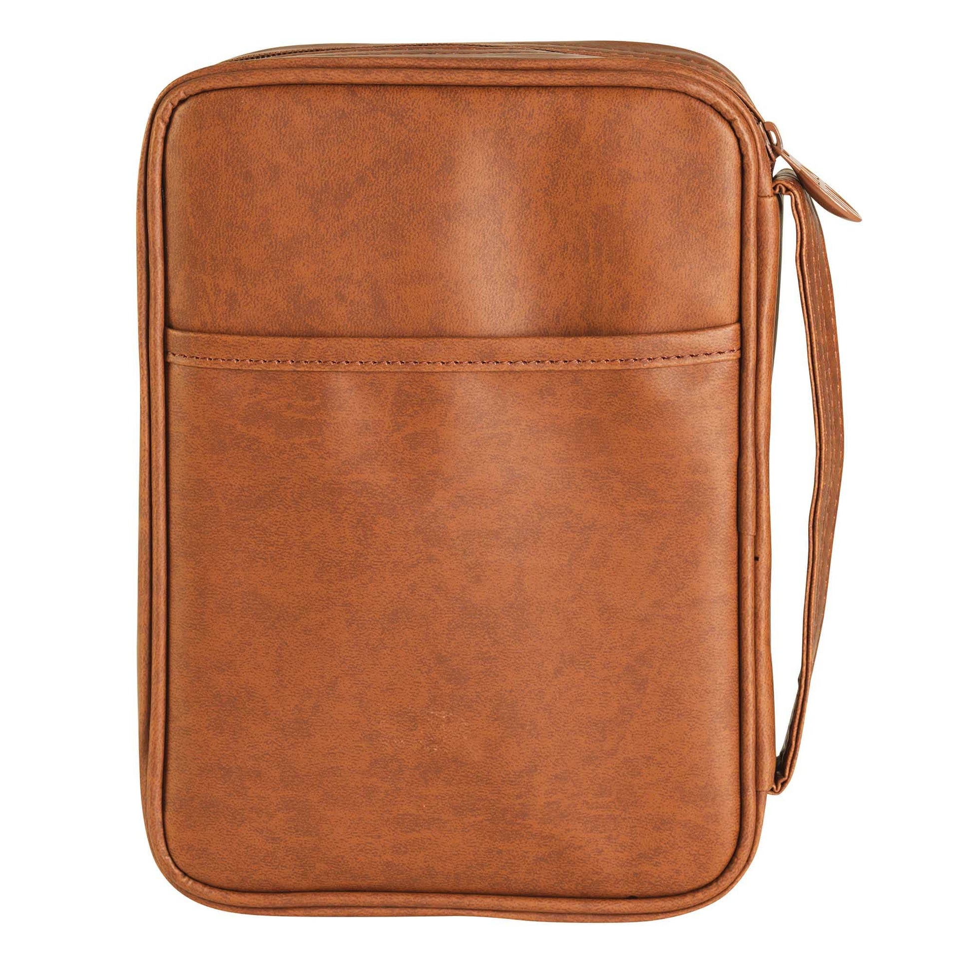 Large Print Bible Cover Has A Smooth Matte Finish And Is Hot-Stamped With Ephesians 6:14-17 In Its Entirety. This Cover Offers Outstanding Quality: Nylon Reinforced Stitching, Lay Flat Construction And A Non-Rusting, Self-Repairing Zipper Around Side. Zipper Is Finished With Spoon Style Pull That Has An Open Cross Design. Convenient Carrying Handle At Side. Inside Is A Pen Loop Plus An Attached Ribbon Bookmark. Outer Shell Of Cover Is Vinyl. The Large Print Size Is Approximately 7 3/4 x 2 1/2 x 11 1/4.