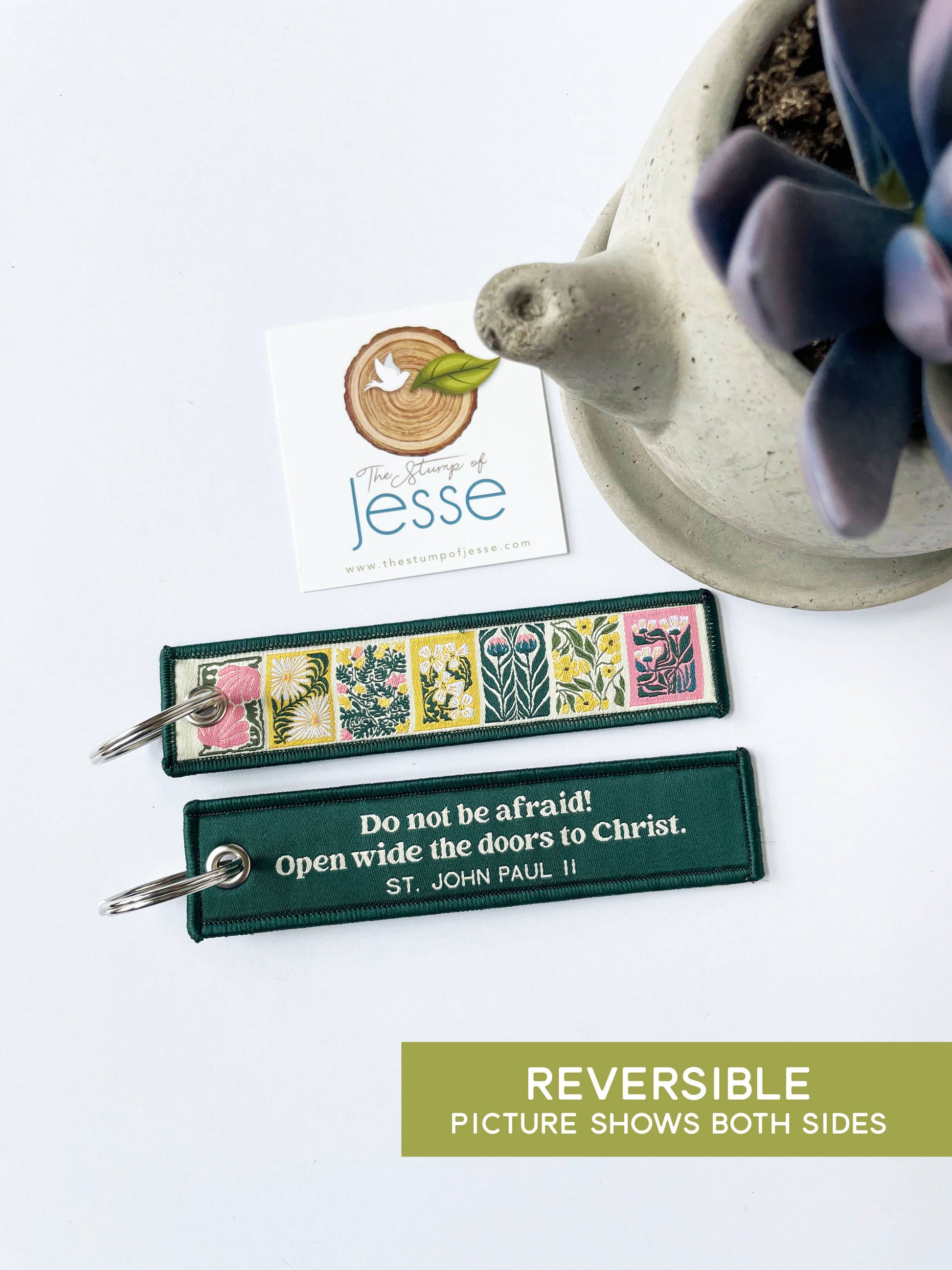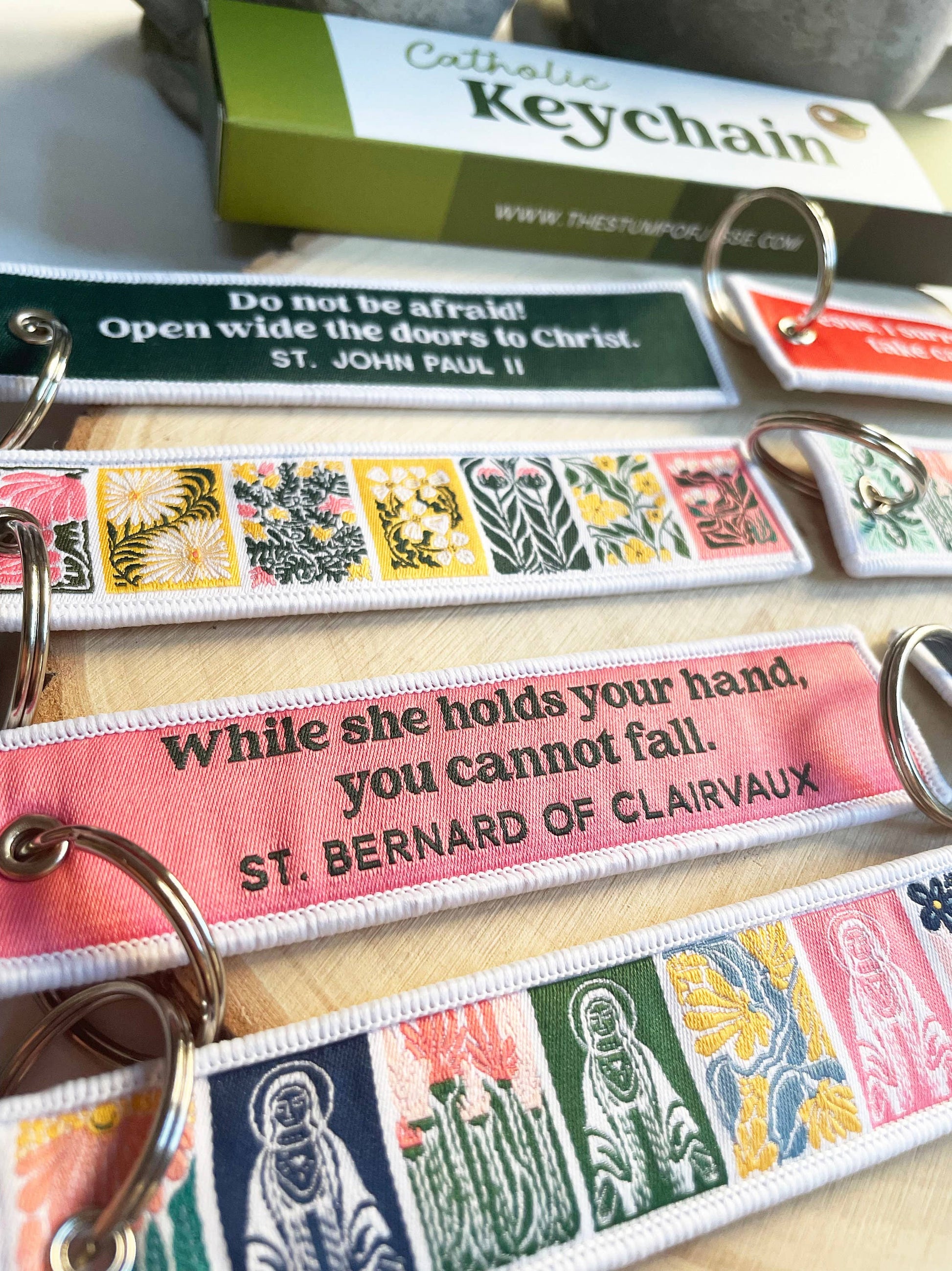 Catholic Woven Keychain | Bag Tag | Luggage Tag | St. Therese Of Lisieux These beautiful woven keychains can be used to identify your keys, bag, backpack, or luggage. They are double-sided: on one side they have the quote and on the other beautiful, detailed designs.