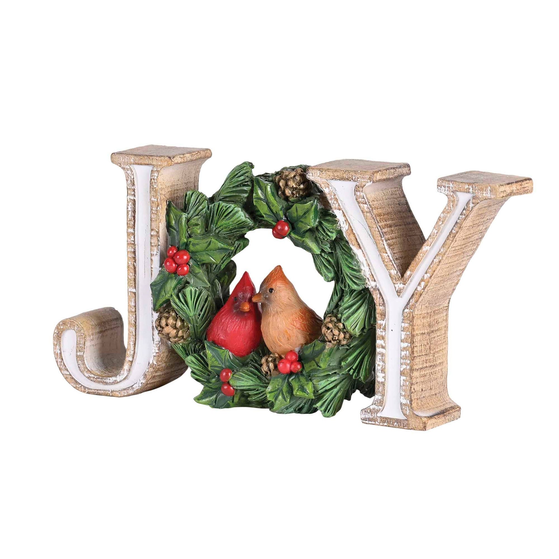 The Christmas Figurine Cardinals Joy Wreath, Adorned With Sparkling Details, Serves As An Exquisite Centerpiece Or Accent For Any Holiday Decor Setting. This Delightful Tabletop Item, Featuring A Beautifully Decorated Pair Of Cardinals, Is Perfect For Ushering In The Joy Of The Season. Measures 8 Inches In Length. Individually Packed.