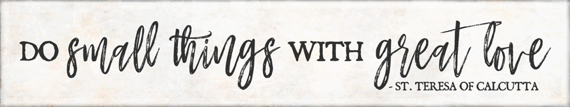 This Catholic quote painted wood plaque features the words of St. Teresa of Calcutta, “Do small things with great love”.