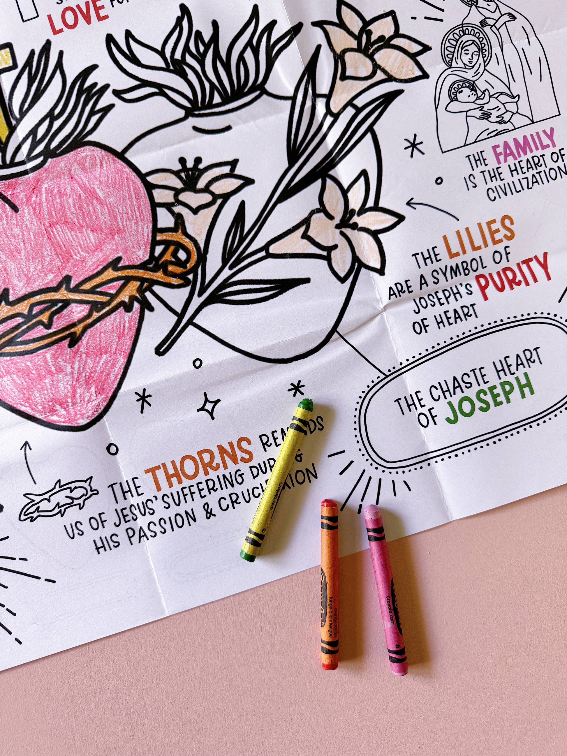 Ignite your child's faith and creativity with the Holy Family Hearts Jumbo Activity Sheet from Catholic Family Crate! This 2-foot by 1.5-foot foldable activity sheet is a perfect blend of fun and learning, designed to deepen your child's devotion to the Sacred Heart of Jesus, Immaculate Heart of Mary, and Most Chaste Heart of Joseph. Comes with a set of 3 so there is enough for everyone!