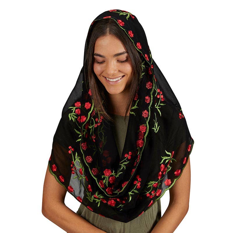 For many years, women have worn veils in church. It is meant to be a symbol of modesty and humility before God. This unique styled Infinity Floral Chapel Veil features an embroidered floral design and will accommodate short to medium length hair styles. Veil can easily be worn around the neck when not in use. Great to wear during any service. Comes with a handy pouch that tucks easily into a purse.