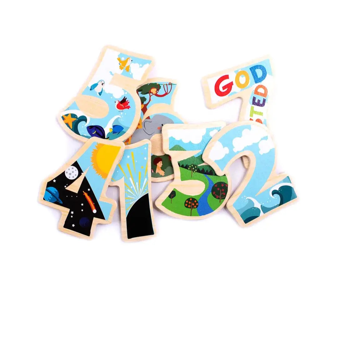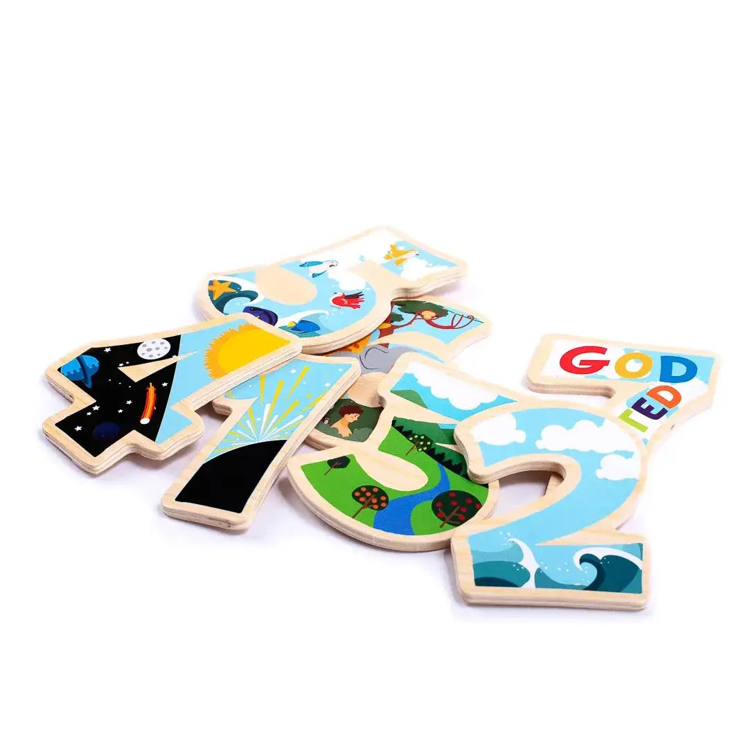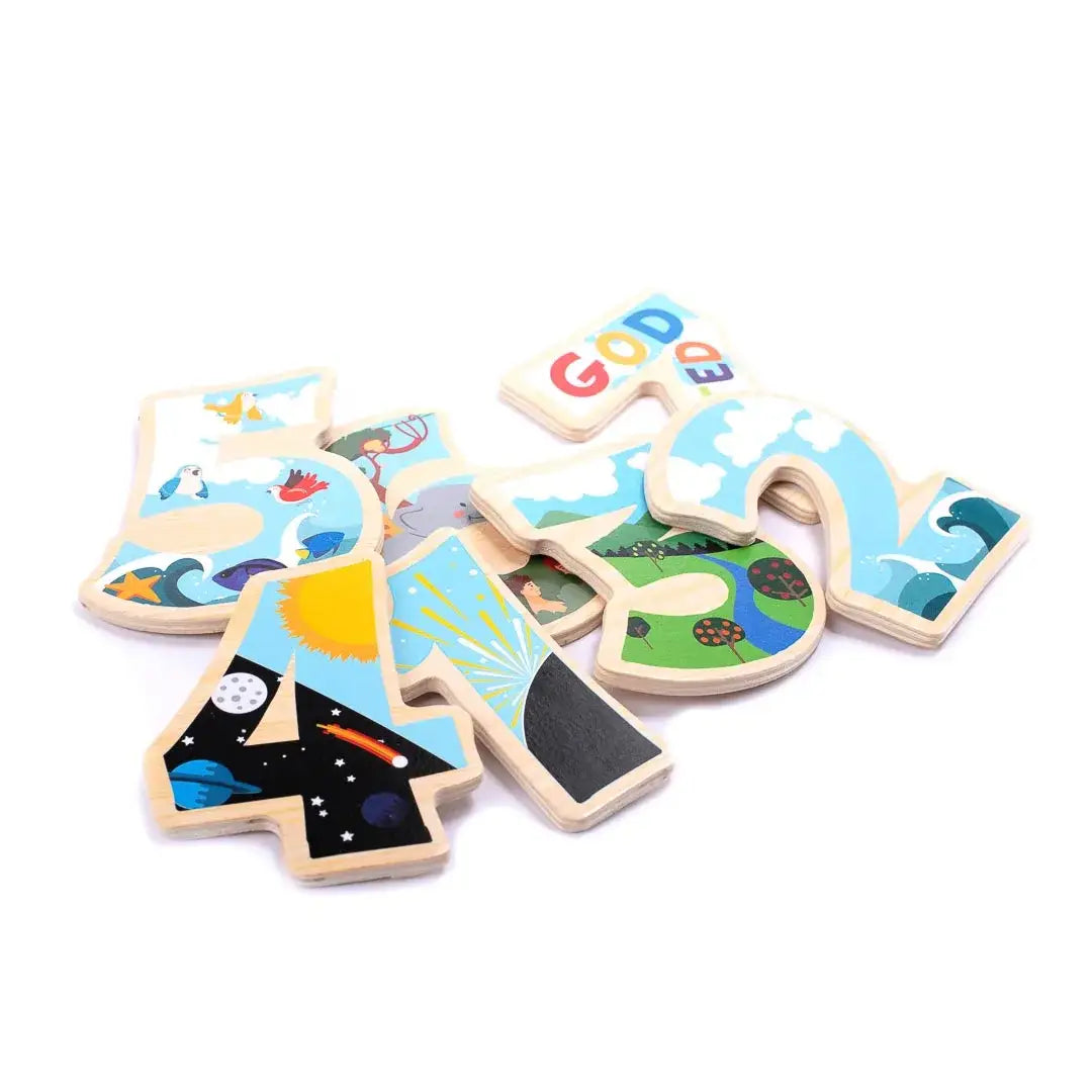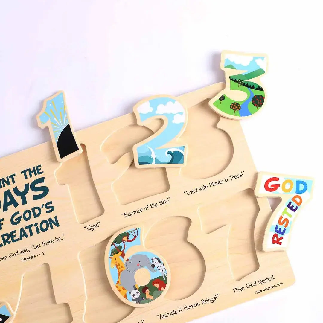 Each beautifully crafted puzzle piece represents a number from 1 to 7, corresponding to the different days of creation. With vibrant colors and delightful imagery, this puzzle brings to life the story of creation as described in the Bible.