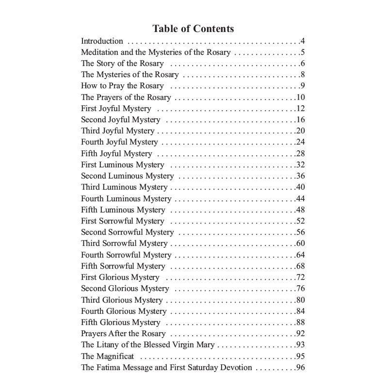Includes all 20 mysteries of the Rosary, with a Scripture, meditation, and response for each Hail Mary.