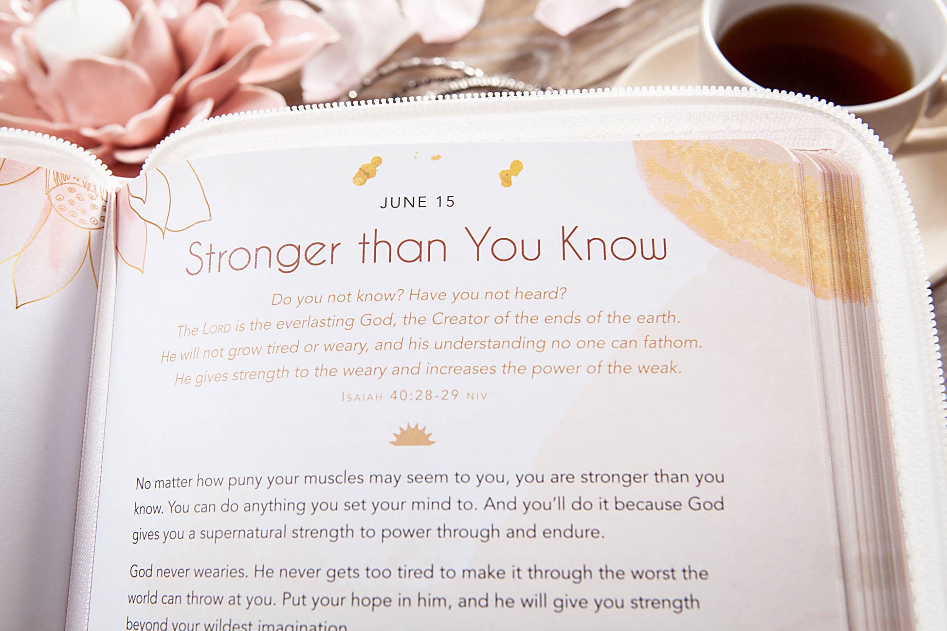 Start and end each day with peace, reflection, and renewed faith. Be Still and Know is your invitation to quiet your mind, open your heart, and listen to the gentle guidance of God’s Word. This daily devotional offers morning and evening reflections to inspire, encourage, and deepen your connection with God. Promise-filled Scriptures and heartfelt prayers will help you face each day with courage and purpose. As the day draws to a close, release your stress and rest in the assurance of God’s love and care. Be still for a moment and find strength, peace, and joy as you connect with God. He knows you fully, loves you deeply, and wants to meet with you wherever you are. Features: faux leather binding, zippered cover, satin ribbon marker, 368 pages