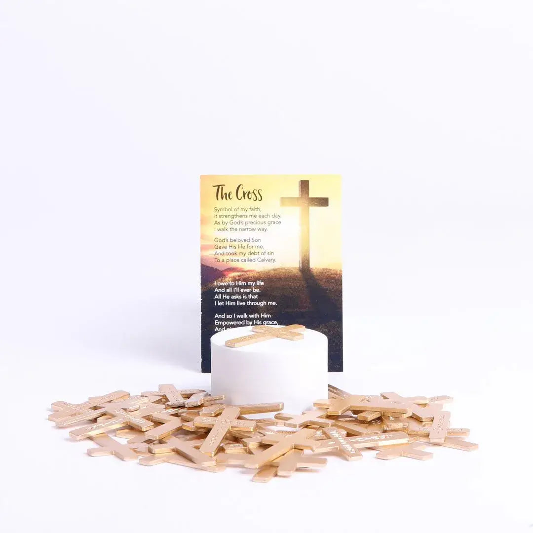 There's nothing like a reminder of all the things Jesus has done for you, and these pocket crosses serve as a great reminder that's easy to carry with you. Made of smooth and lightweight aluminum that won't tarnish, these cross shapes are 1.75" x 1" and have rounded corners and engraved messages.