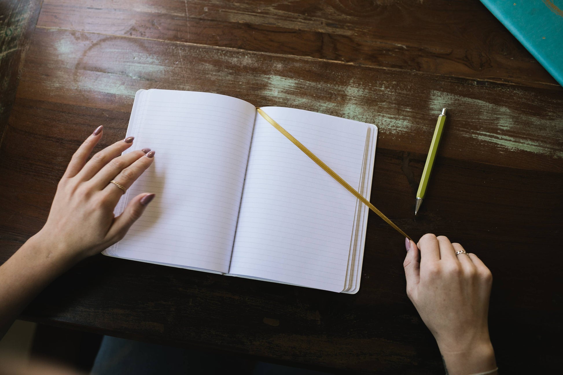 5.7" × 8.26" in. Gold ribbon page separator and 128 lined pages.
