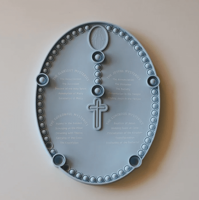 Pray the Rosary with Gather and Pray's exclusive Rosary Popper! You’ll never lose your spot while praying the Rosary again. Simply press a bubble down and immediately see your place. The mysteries of the Rosary are printed directly on the popper making for quick and easy reference. These make a wonderful gift for children and adults alike. The perfect addition to your Mass bag, Rosary stash, or prayer table. Made from high quality food grade silicone. Exclusive Gather and Pray LLC original design. Patent Pending.