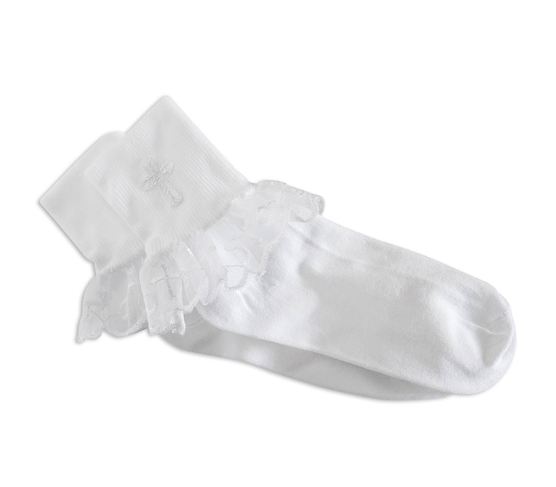 White Girl's Lace First Communion Socks with Cross